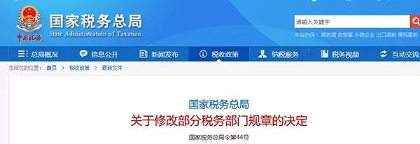 《國家稅務(wù)總局關(guān)于修改部分稅務(wù)部門規(guī)章的決定》,已經(jīng)于2018年6月5日國家稅務(wù)總局2018年度第1次局務(wù)會議審議通過,現(xiàn)予公布,自公布之日起施行。